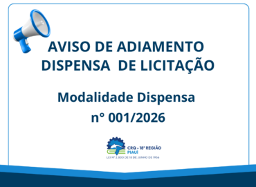 CRQ 18ª Região/Piauí divulga Aviso de Adiamento de Dispensa de Licitação