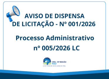 CRQ 18ª Região/Piauí abre Aviso de Dispensa de Licitação