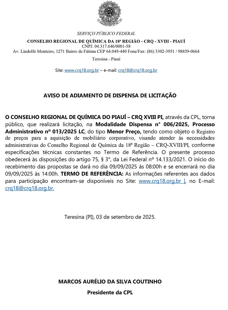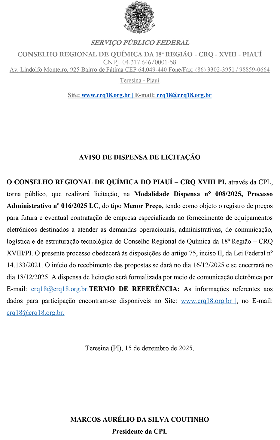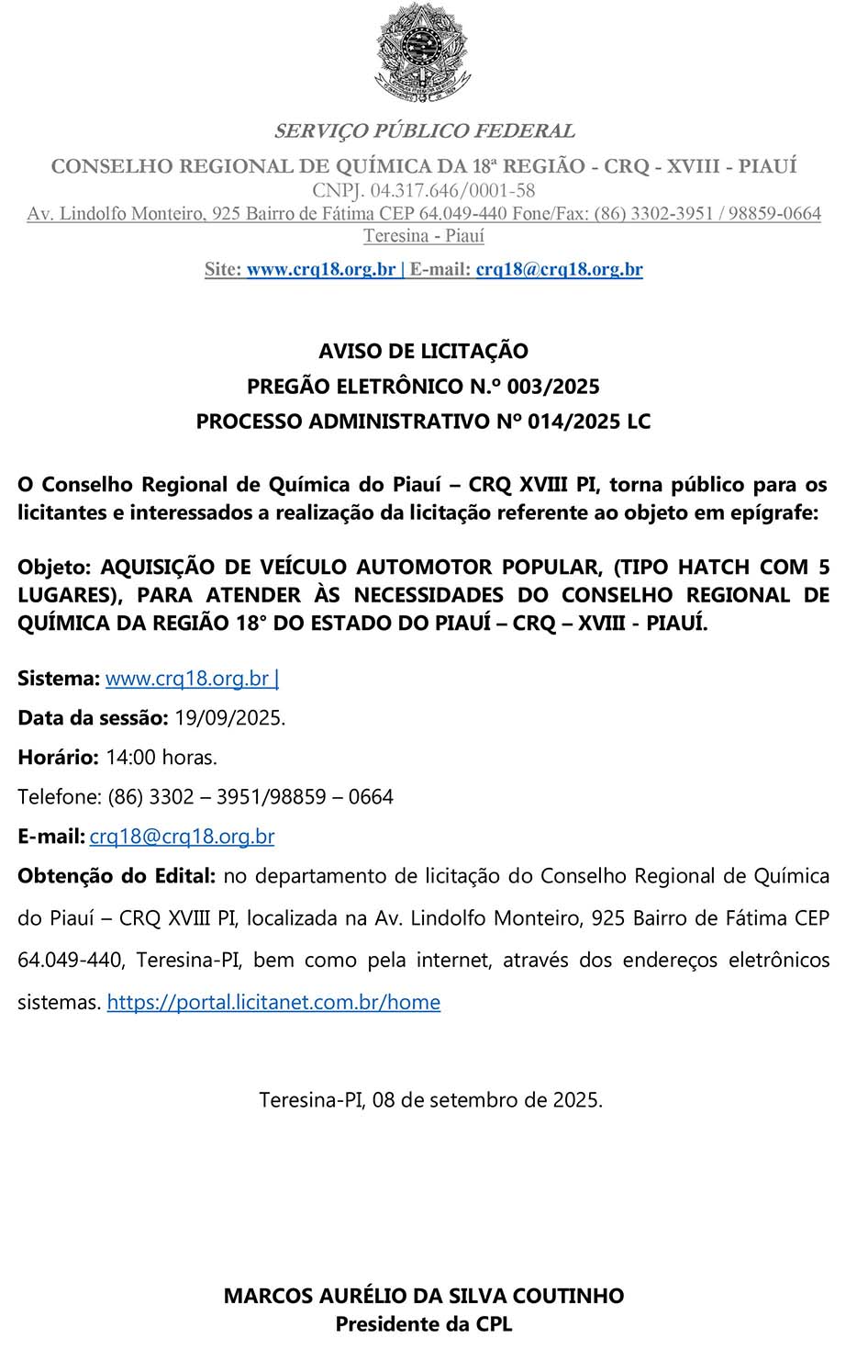 Aviso de Licitação – nº 008/25