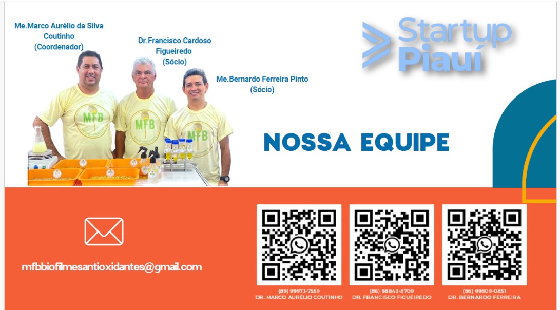 A startup MFB Filme Antioxidante para Exportação de Grãos, idealizada pelos químicos Marco Aurélio Coutinho (conselheiro do CRQ Piauí), Francisco Cardoso Figueiredo (tesoureiro do CRQ Piauí) e Bernardo Ferreira Pinto, foi uma das escolhidas para participar do maior evento de tecnologia e inovação do mundo, que acontecerá de 10 a 13 de novembro, em Lisboa, Portugal.